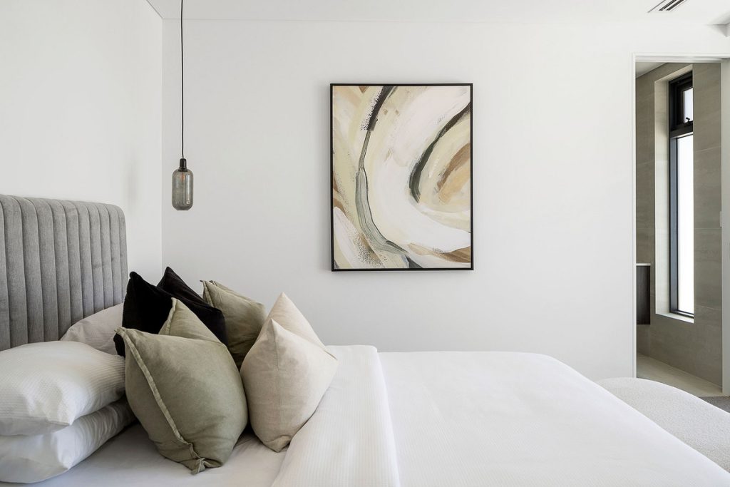 A monochromatic exterior, punctuated by the playful charm of a mustard-hued front door, sets the tone for the design detail within. Beyond its crisp facade, 39 Marmion has been designed to harmonise sustainability with style, seamlessly integrating active and passive solar principles to deliver year-round comfort and energy efficiency. Every detail has been considered, from the double-glazed windows to a generally sealed structure that minimizes heating and cooling loss during the respective warmer and cooler months. Complemented by a 6kW solar panel system, a Rheem solar hot water system and an otherwise energy efficient electric household, the home not only enhances everyday living but significantly reduces its environmental footprint. Provision for electric vehicle charging is built in for further convenience.